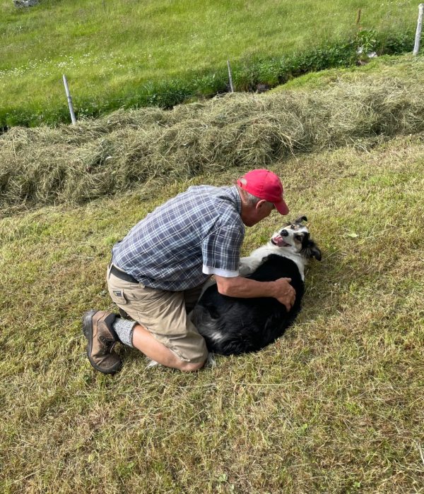 Freuen sich immer über Streicheleinheiten. Auf unserem Hof wachsen Kühe, Kälber, Ziegen, Enten, Hühner, Hasen, Katzen und natürlich unser Hund Nelly liebevoll auf.